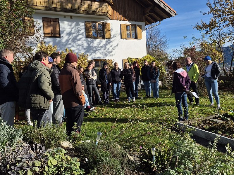 Abgeholt wurden wir am Bahnhof in Sonthofen und wurden zu unserem ersten Stopp gebracht, dem Kräuterhof Waibel-Bächle. Dort haben wir spannende Einblicke in die drei Unternehmenszweige Beherbergung, Mutterkuhhaltung sowie Kräuterherstellung und Verkauf bekommen. Abschließend durften wir die regionalen Produkte probieren und haben alle selbstgemachtes Kräutersalz mitnehmen dürfen.