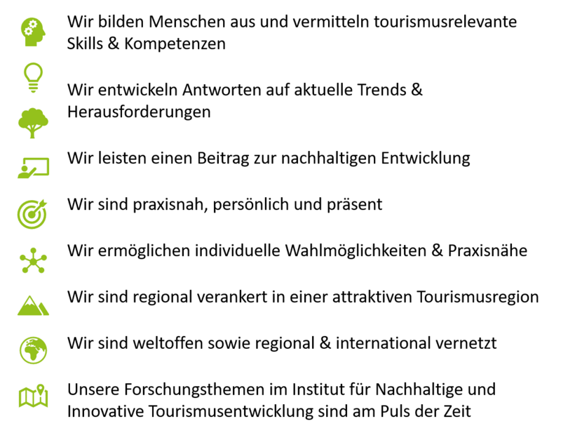 Die Fakultät Tourismus-Management ist seit 2011 eine eigene Fakultät der Hochschule Kempten und gehört damit zum exklusiven Kreis der drei Tourismus-Fakultäten in Deutschland. Mit rund 500 Studierenden und 12 Professorinnen / Professoren, den Bachelor-Studiengängen “Tourismusmanagement” und “Tourismuszukunft: Innovation, Transformation und nachhaltige Entwicklung” sowie dem Masterstudiengang "Innovation, Unternehmertum und Leadership" gehört sie zu den führenden Playern in der akademischen Tourismusausbildung. Ergänzend bieten wir gemeinsam mit der Katholischen Universität Eichstätt-Ingolstadt und anderen bayrischen Hochschulen den Master of Science (M. Sc.) “Transformation und nachhaltige Lebensraumentwicklung – Tourismus neu gestalten” an.