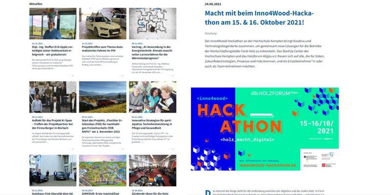 50 Newsbeiträge zeugen von einem ereignisreichen Jahr. Besondere Aufmerksamkeit erhielt dabei der Aufruf zum Mitmachen zum Inno4Wood-Hackathon mit 65 Views.