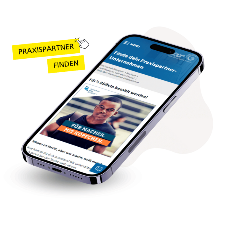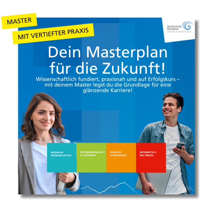 Informiere dich hier ausführlich auf unseren Seiten über die 3 Schritte zu deinem Masterstudium mit der Extraportion Praxis an der Hochschule Kempten.