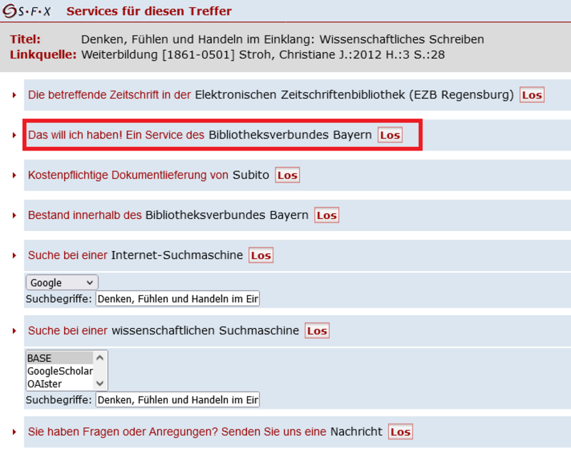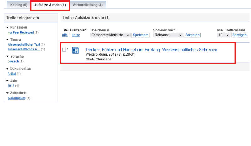 4. Eventuell müssen Sie im nächsten Schritt noch die genaue Zeitschrift auswählen, in der Ihr gewünschter Aufsatz enthalten ist.