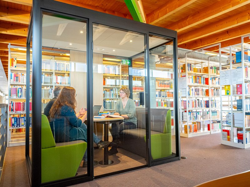 Wir haben einen neuen Lieblingsplatz in unserer Bibliothek: in unserem neu aufgebauten Cube können Sie ganz in Ruhe lernen, Online-Vorlesungen besuchen oder sich besprechen.