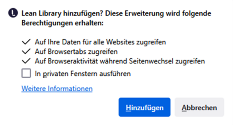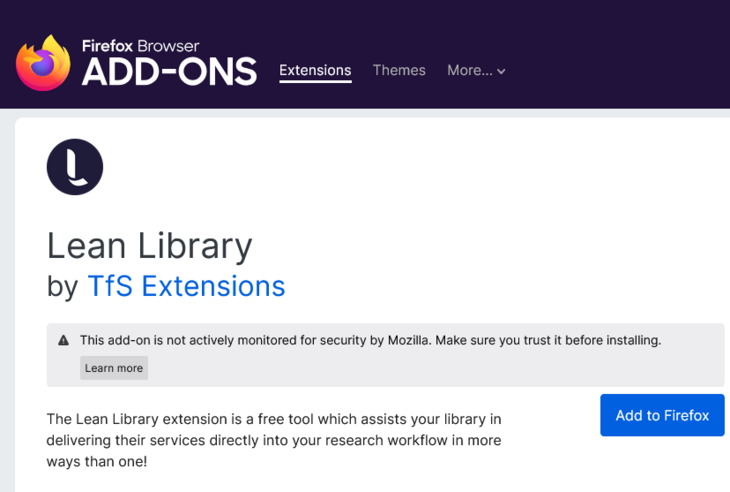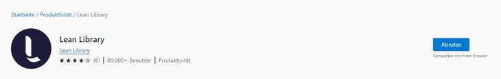 Sie können sich Lean Library hier herunterladen. Klicken Sie auf "Abrufen" und anschließend auf "Erweiterung hinzufügen". Es öffnet sich ein neuer Tab im Browser.