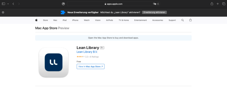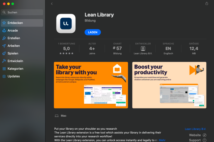 Sie können sich Lean Library für Safari hier herunterladen. Klicken Sie auf "Laden" und anschließend in der Symbolleiste Ihres Browsers auf "Erweiterung aktivieren".