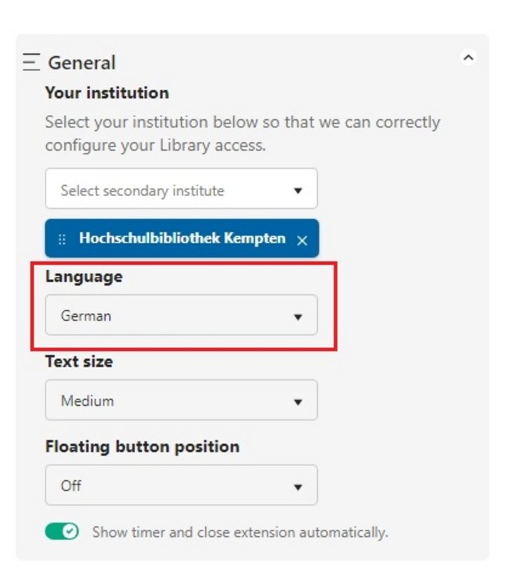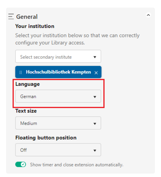 Heften Sie die Browsererweiterung dann an die Symbolleiste Ihres Browsers an und stellen Sie Ihre gewünschte Sprache ein. Am besten funktioniert Lean Library mit Edge und Chrome.