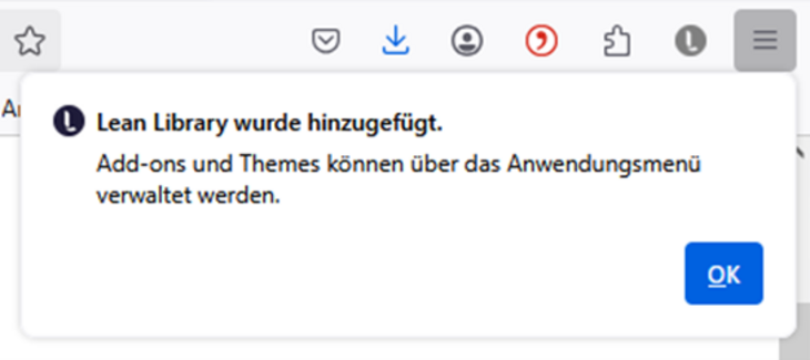 Bestätigen Sie die Meldung, dass Lean Library hinzugefügt wurde, mit "OK".