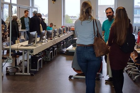 Die Besucherinnen und Besucher hatten die Möglichkeit, hinter die Kulissen der Fakultät Elektrotechnik zu blicken, beispielsweise Roboter in Aktion zu erleben und Mikrocontroller kennenzulernen sowie direkt auszuprobieren.