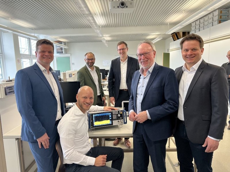 Bei der Übergabe waren neben Laborleiter Prof. Dr. Tim Poguntke auch Hochschulpräsident Prof. Dr. Wolfgang Hauke sowie Prof. Dr. Frank Niemeier, Dekan der Fakultät Elektrotechnik, anwesend. Rohde & Schwarz wurde vertreten durch Michael Dill, Werkleiter und Geschäftsführer am Standort Memmingen, Katja Schmidt, Assistenz der Geschäftsführung sowie Georg Berwanger, Vertriebsleiter und Marvin Waniek, Sales Engineer beide vom Standort München.