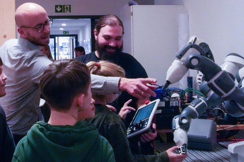Neben der Enthüllung der Challenges erhielten die Schülerinnen und Schüler eine Hands-on-Session von Prof. Peter Stich über den Einsatz von Virtual und Augmented Reality im industriellen Umfeld, die einige von ihnen staunen ließ. Parallel dazu erkundeten die Nachwuchsforschenden die verschiedenen Roboter im Care and Mobile Robots Lab, geführt von Prof. Manuel Giuliani, Prof. Matthias Lorenzen und Markus Krömer.