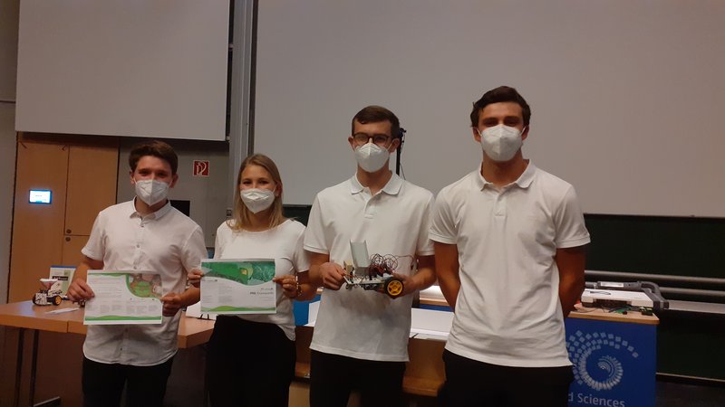 Trotz aktueller Einschränkungen bei realen Versuchen, Lieferengpässen bei elektronischen Bauteilen und vornehmlich digitalen Abstimmungsrunden sowie anderen kleineren und größeren Hürden konnten alle Teams ein autonom fahrendes Transportsystem entwickeln, das vor dem Hintergrund der energie- und Ressourceneffizienz ausgelegt wurde.
