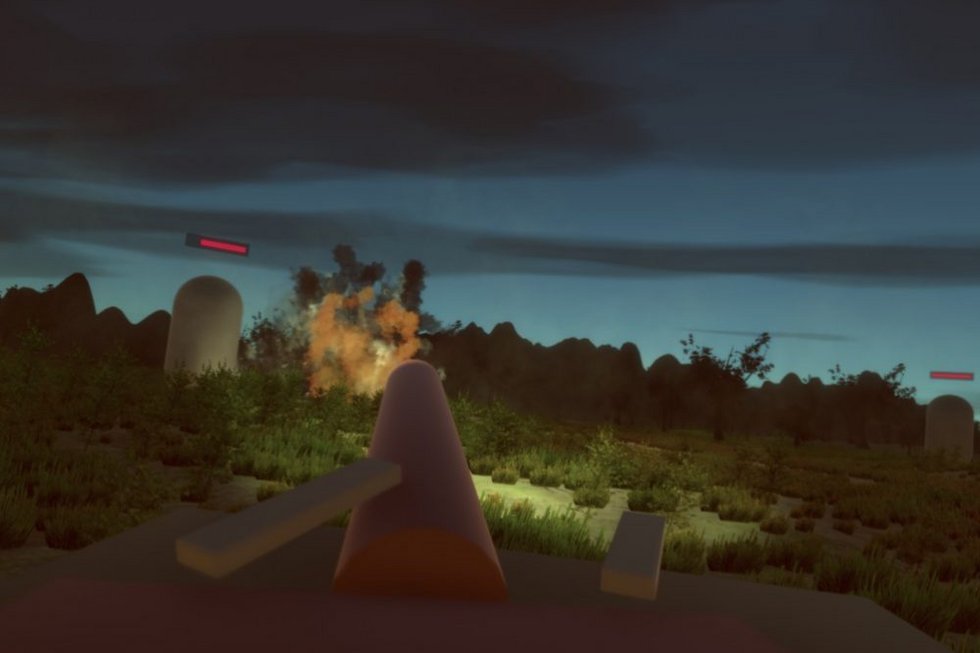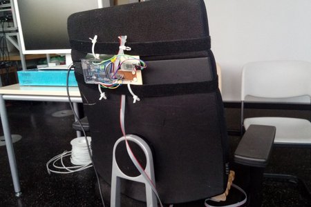 Steuerung für ein Fahrzeug in einer Virtuellen Umgebung anhand eines Bürostuhls mit Orientierungssensoren. Mit einem zusätzlichen erstellten Joystick können Ziele, mit diesem panzerähnlichen Fahrzeug, abgeschossen und so Punkte gesammelt werden.