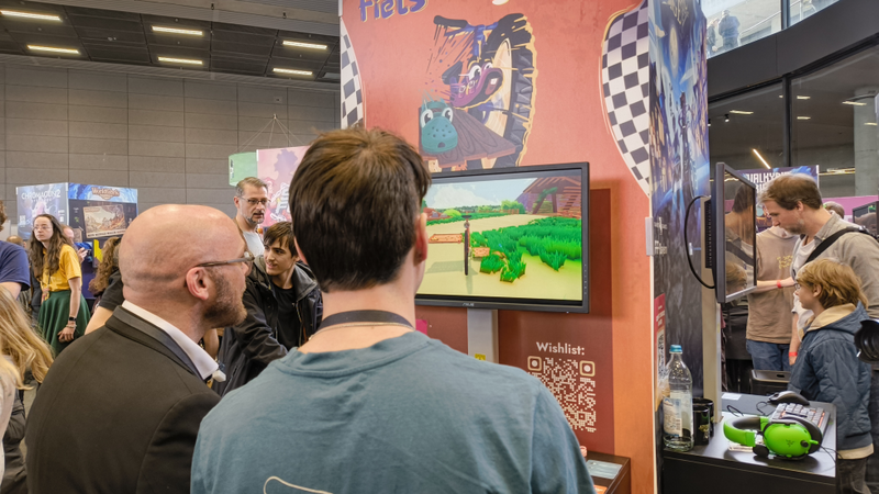 Mit mehreren Computerspiel-Prototypen haben wir den Stand der Hochschule Kempten interaktiv gestaltet und Interessierte über die Studienpläne der Studiengänge Game Engineering (Bachelor) und Game Engineering und Visual Computing (Master) informiert. An den drei Messetagen konnten unsere Studierenden ihre Prototypen aus dem Studium einem breiten Fachpublikum vorstellen, sich in der Branche vernetzen, bei Workshops und Vorträgen informieren und noch vor Ort den ein oder anderen Verbesserungsvorschlag in ihr Spiel einbauen oder Bugs fixen😉. Die aktualisierte Version des Multiplayers Friendship Runed stellte sich wie schon 2025 abermals als Publikumsmagnet heraus. Großes Interesse gab es auch an dem Spiel Fiets-Together, das von unseren ehemaligen Studierenden zum ersten Mal in der Indiearea vorgestellt wurde.