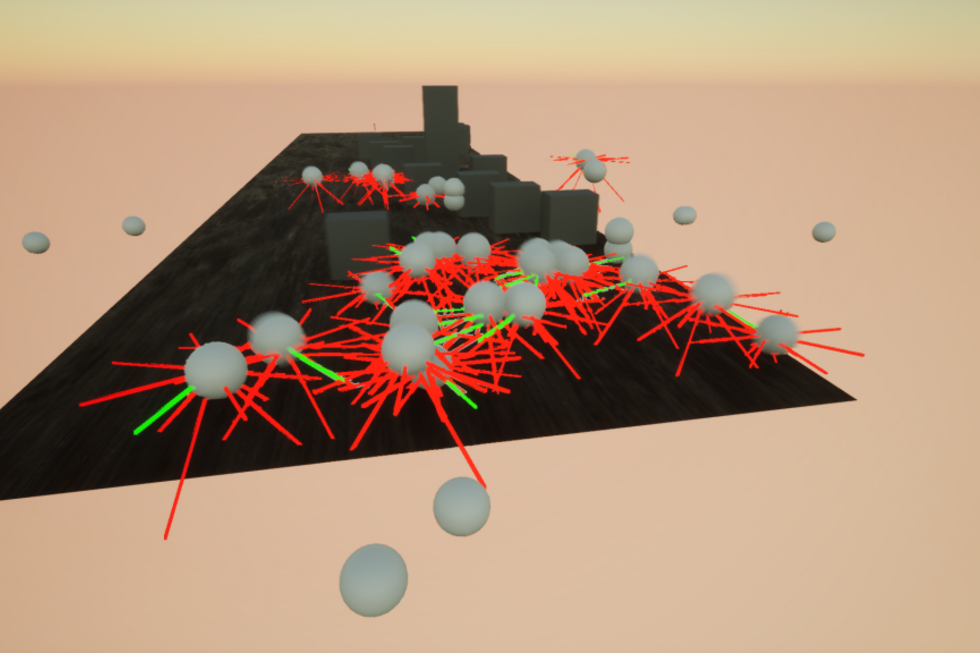 Schließlich ist es in dieser Arbeit gelungen zwei unterschiedliche neuro-evolutionäre Algorithmen zu implementieren, welche es ermöglichen, eine KI durch selbständiges Lernen in einem dreidimensionalen Raum zu einem Ziel zu bewegen.
