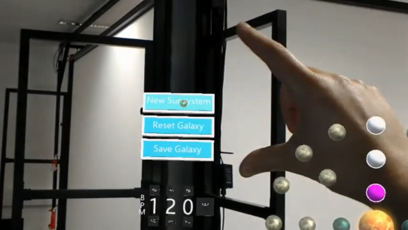 Es handelt sich um eine Drum Machine für die Microsoft HoloLens. Der Spieler soll das Gefühl bekommen, inmitten einer Galaxie zu stehen und er hat die Möglichkeit neue Sonnensysteme zu erstellen. Die Orbits bilden die Soundspuren ab und die daraufliegenden Planeten sind die Anschläge der Klänge. Im Zentrum ist die Sonne, mit der man grundlegende Einstellungen an dem Sonnensystem tätigen kann. Auf die Planeten können verschiedene Klänge platziert werden, die zuvor in Kategorien unterteilt sind.