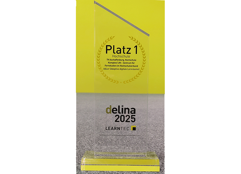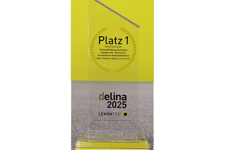 Im Rahmen der diesjährigen Bildungsmesse LEARNTEC prämierte die Messe Karlsruhe das Projekt AdLer (Adaptive digitale Lernräume) mit dem 1. Platz des delina Awards 2025 in der Kategorie Hochschule.