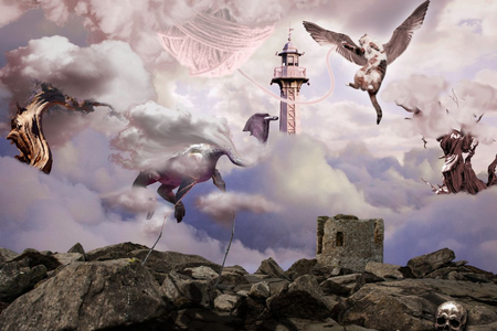 "Wolkenwesen in zerstörtem Lebensraum auf Nahrungssuche" im Studiengang