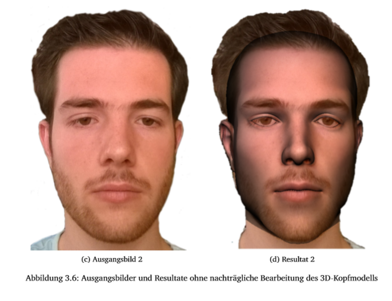 Das Ziel dieser Bachelorarbeit bestand darin, aus einer einzigen 2D-Fotografie eines Kopfes teilautomatisiert ein 3D-Modell zu erstellen, so dass sich die fotografierte Person bei Betrachtung des Modells sofort erkennt und stark mit diesem identifizieren kann.