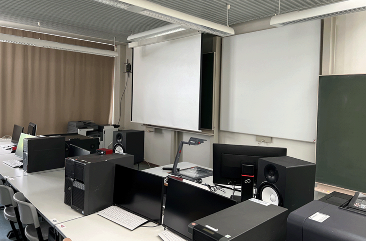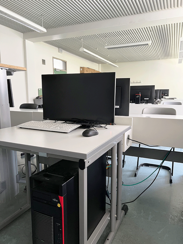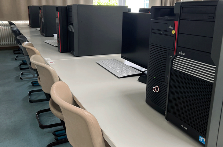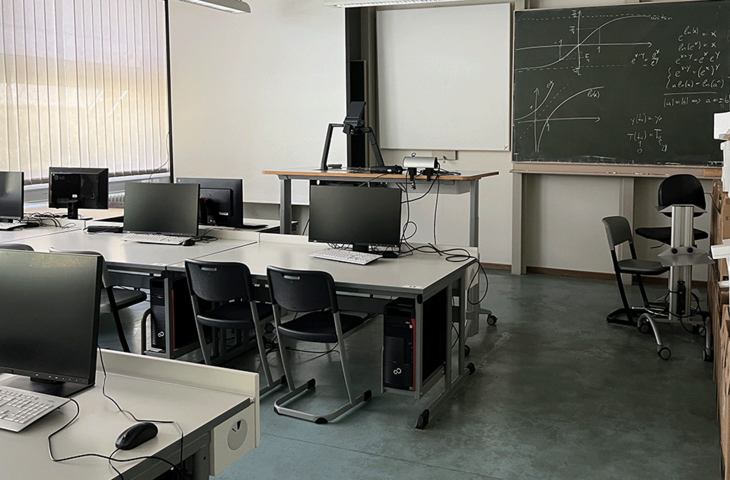 In unseren Software-Entwicklungslaboren stehen mehr als 40 Arbeitsplätze für Spieleentwicklung in Klein- und Großgruppen bereit. Hier finden Übungen, Seminare und Projekte statt, bei denen die Studierenden parallel zum Dozentenvortrag am Beamer selbst mitarbeiten, entwickeln und testen können.