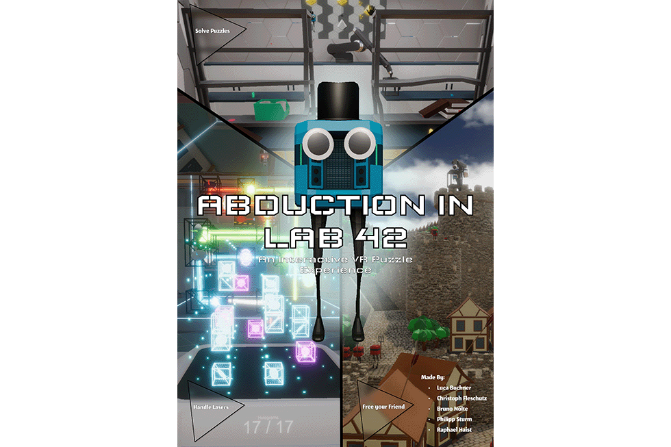 "Abduction in Lab 42" wurde im Rahmen der GE Projektarbeit im Studiengang Informatik - Game Engineering im Sommersemester 2023 von den Studierenden Luca Buchner, Christoph Fleschutz, Bruno Nölte, Philipp Sturm und Raphael Haist (Sound) erstellt.
