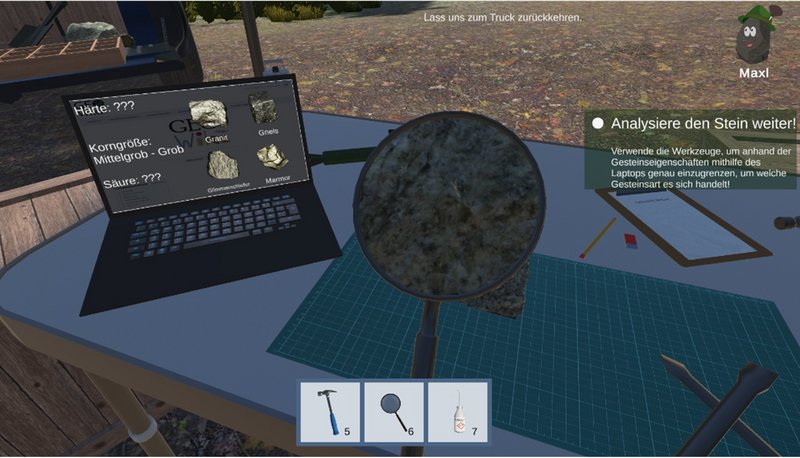 Das Serious Game beschäftigt sich mit den unterschiedlichen Lerntechniken der Geologie. Das Ziel des Spieles besteht darin, den Spieler die Welt der Geologen näher zu bringen. Der Spieler muss verschiedene Gesteine in einer großen 3D-Spielwelt finden und sie analysieren. Damit werden spielerisch wichtige Informationen über Steine und ihre Eigenschaften erlernt. Im Spiel stehen verschiedene Werkzeuge, wie Hammer, Meißel, Schaufel, Eimer und Kompass, zur Verfügung, die nach und nach in Quests freigeschalten werden. Der Spieler muss sämtliche Steine im Spiel finden und kann dadurch eine akkurate, an Bayern angelegte Gesteinskarte anlegen. Je nach Quest bekommt der Spieler Fragen gestellt, ob er das erlernte Wissen auch abrufen kann.