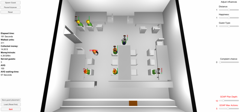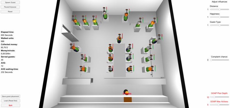 In diesem Dokument wird die grundlegende Funktionsweise des „Goal-Oriented Action Planning“-Algorithmus beschrieben und es wird eine mögliche Implementierung vorgestellt, bei der GOAP dazu verwendet wird, das Verhalten einer Bedienung in einem Gastronomiebetrieb zu simulieren.