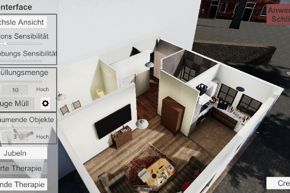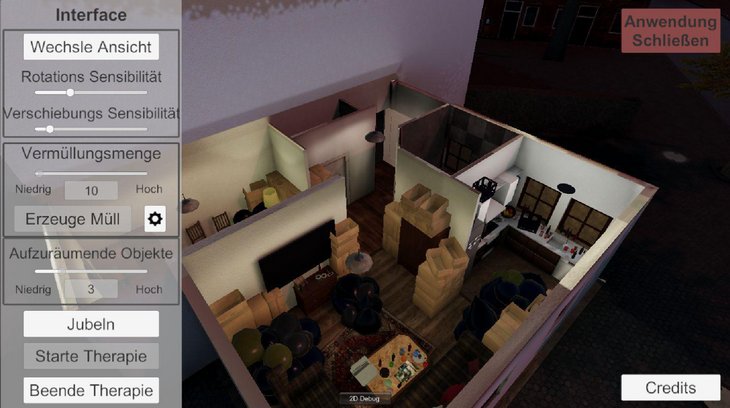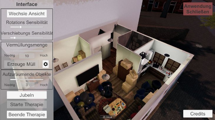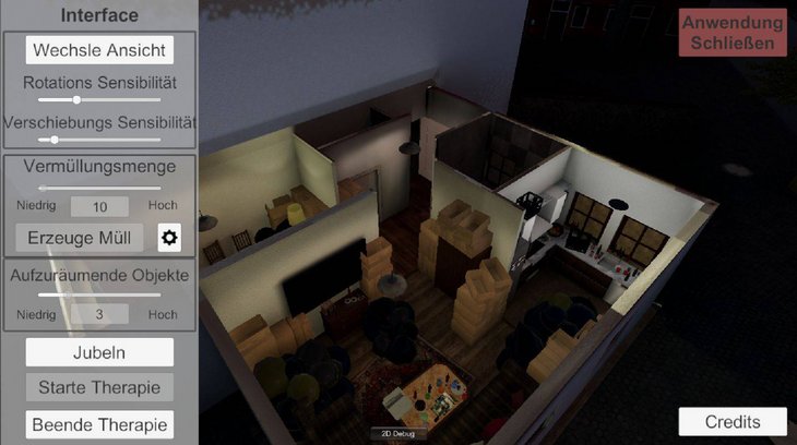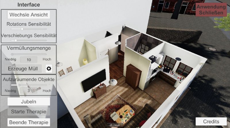 In Kooperation mit dem vfkv – Ausbildungsinstitut München gGmbH (Hyperlink: www.vfkv.de) wurde im Sommersemester 2021 ein Prototyp eines Virtual Reality Simulators zur Behandlung des Messie-Syndroms entwickelt.