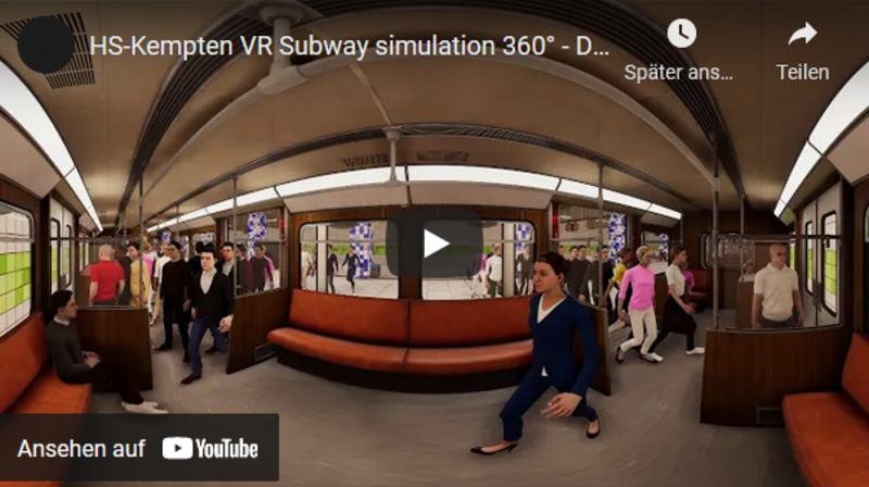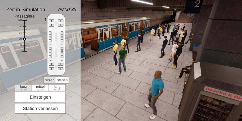 Agoraphobie (ugs. Platzangst) ist eine bestimmte Form der Angststörung, bei der Angst durch verschiedene Orte oder Situationen wie weiten Plätzen oder Menschengedränge ausgelöst wird. In Kooperation mit dem vfkv – Ausbildungsinstitut München gGmbH (Hyperlink: https://www.vfkv.de) wurde ein Prototyp für eine VR-Exposition in Form eines Virtual Reality U-Bahn Simulators entwickelt. Ziel der Simulation ist es, dem Patienten im Rahmen einer Expositionstherapie durch die immersive Erfahrung die Angst vor der phobischen Situation zu nehmen.