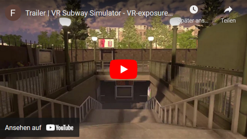 VR bietet die Möglichkeit, eine immersive und realistische Umgebung zu schaffen, welche die Darbietung komplexer und dynamischer 3D-Stimuli ermöglicht. In diesem Zusammenhang wird eine U-Bahnfahrt virtuell simuliert, die vom Therapeuten währen der VR-Exposition gesteuert und überwacht werden kann. Dadurch kann die Simulation jederzeit modifiziert und an den individuellen Therapieverlauf angepasst werden. Durch diese Art der Exposition können unvorhersehbare und potentiell gefährliche Situationen vermieden werden, wovon Patienten profitieren könnten, die nicht bereit sind, eine in-vivo-Exposition durchzuführen.