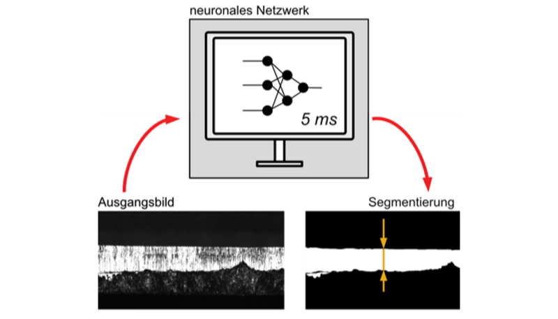 Die automatisierte Bestimmung der Qualität der Glattschnittfläche erfolgt mithilfe von neuronalen Netzwerken. Nur diese Bildverarbeitungstechnik schafft es, die anspruchsvolle Segmentierungsaufgabe der Schnittfläche robust und schnell zu lösen – trotz schwankender Intensitäten, veränderlicher Textur, Einrissen und Inselbildung. Und das sogar im Fertigungstakt von bis zu 250 Teilen pro Minute! Trainiert wurde das Netz mit Daten aus einem Langzeit-Stanzexperiment, aber zur Verifizierung wurden unterschiedliche Bilddaten aus verschiedenen Experimenten herangezogen. Nach den ersten Ergebnissen scheint die Methode sehr zuverlässig zu sein.