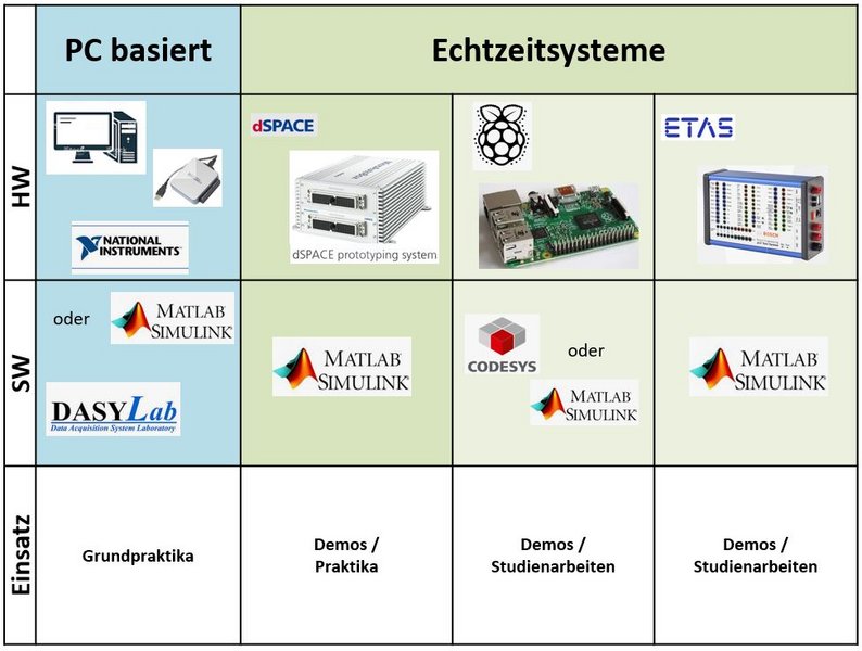 Das Regelungstechnik-Labor hat eine Fläche von ca. 90 m² und verfügt über ein breites Spektrum an Demonstratoren und Versuchsaufbauten. Die eingesetzten Regelstrecken umfassen Aufgabenstellungen aus den Bereichen Hydraulik, Pneumatik und Kinematik/ Kinetik. Die Steuerungen bzw. Regelungen reichen von PC-basierten Lösungen bis hin zu embedded (eingebetteten) Echtzeitsystemen.