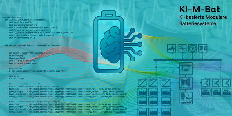 Im Projekt KI-M-Bat wird ein modulares Speicherkonzept sowie eine universelle KI-basierte Software-Steuerung für Batteriespeicher im Industrie- und Gewerbemaßstab entwickelt und erprobt. Das Konzept erlaubt einen effizienten und lebensdauer-optimalen Betrieb von Neu- und Gebraucht-Batterien. In der Software wird ein digitales Zwillingsmodell des Batteriesystems aufgebaut und darauf eine Steuerungsstrategie mittels maschinellen Lernens erprobt. Die Algorithmen werden in einem Hardware-Demonstrator validiert und als Open-Source-Code veröffentlicht.