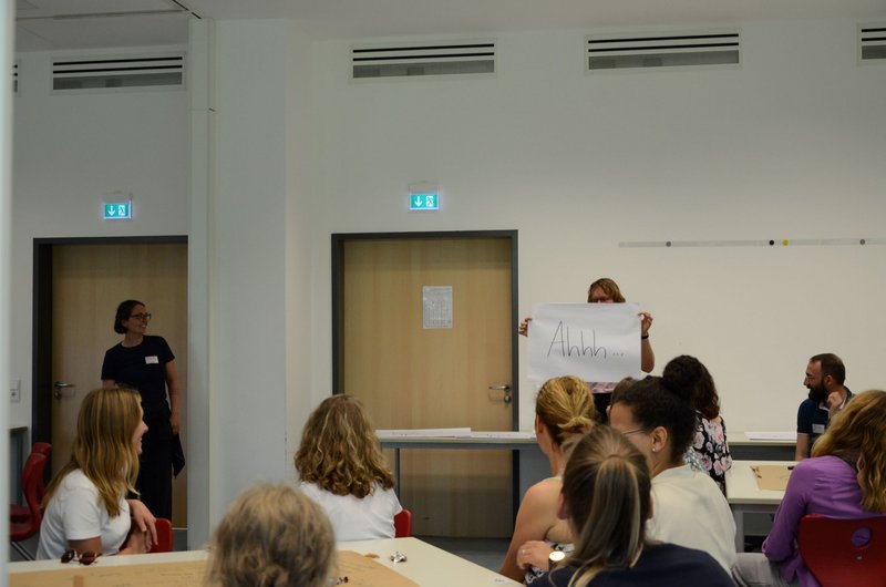Die Ergebnisse der anregenden Gespräche wurden begleitet von Ahhhs und Ohhhs, zustimmendem Kopfnicken und jeder Menge Applaus in großer Runde präsentiert.