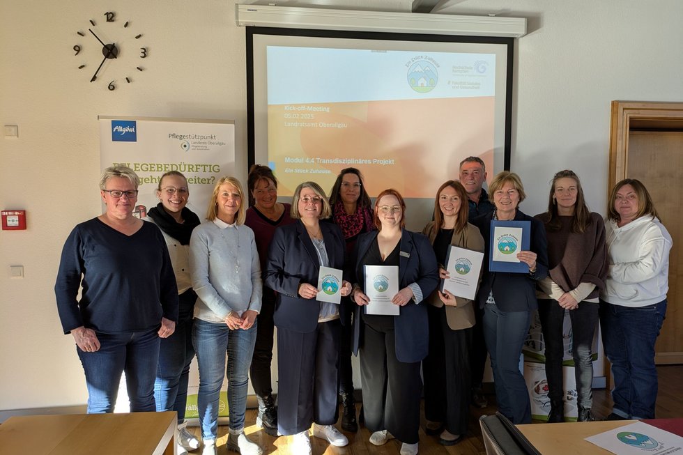 Vier Studierende unseres Studiengangs Gerontologische Pflege und Therapie haben unter der Leitung von Prof. Barbara Terborg ein praxisnahes, innovatives Projekt ins Leben gerufen, um die Pflege im Allgäu gezielt zu unterstützen. Dank ihrer umfangreiche Praxiserfahrung wissen die Studentinnen, wie herausfordernd es für pflegebedürftige Menschen und deren Angehörige sein kann, eine gute und individuelle Versorgung im häuslichen Umfeld sicherzustellen. Ihr großes Ziel ist es, bereits bestehende Strukturen in der Region zu stärken und zu stabilisieren.