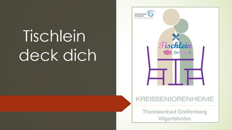 Genügend Gründe für fünf Studierende unseres Studiengangs Gerontologischen Pflege und Therapie, das Projekt „Family Style Meal“ unter der Leitung von Prof. Barbara Terborg, einer Einrichtung, dem Kreisseniorenheim in Vilgertshofen, vorzustellen, welche künftig gerne auf eine dezentrale Speiseverteilung umstellen möchte.