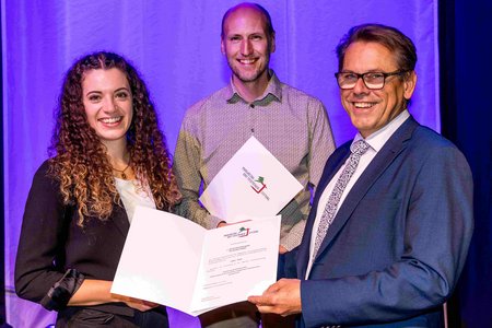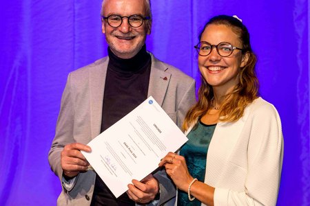 Die Preise der Margaretha- und Josephinen-Stiftung übergab der Vorsitzende des Kuratoriums der Stiftung, Jürgen Baunach, an die Absolventin der Gesundheitswirtschaft, Sandra Weber, sowie an den Absolventen der Sozialen Arbeit, Andreas Katt. Dotiert ist der Preis mit je 1.000€.
