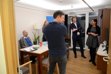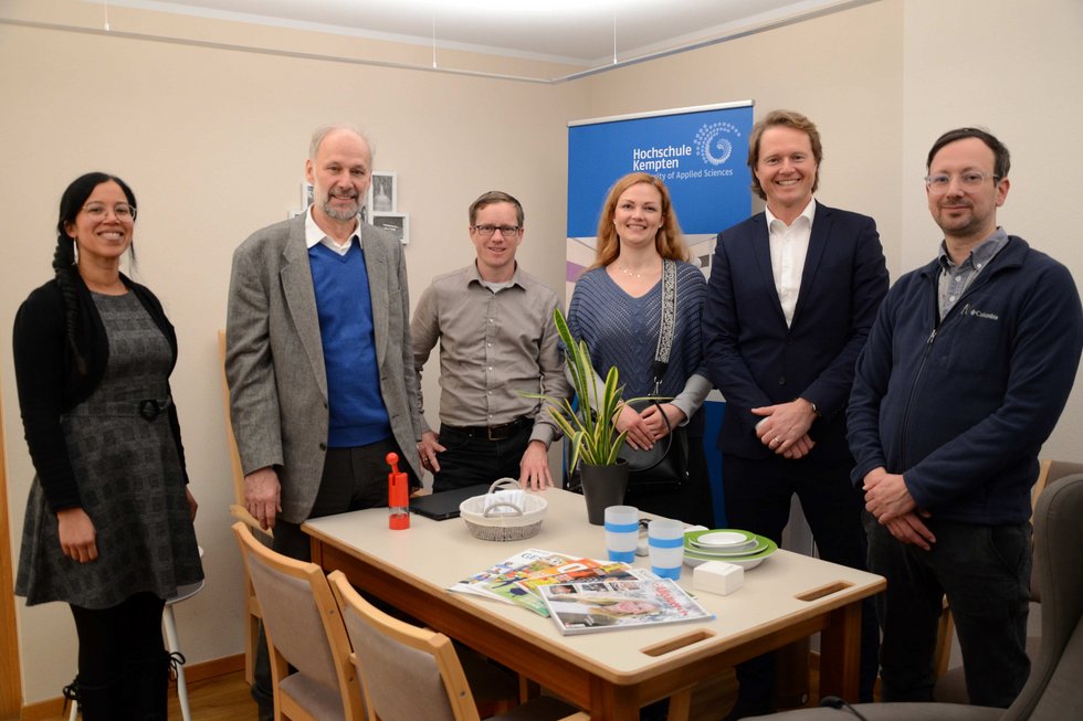 Rund eineinhalb Stunden nahmen sich die Beteiligten Zeit für den Austausch bevor es für die Gäste aus München ins AAL Living Lab der Hochschule Kempten ging. Beim Besuch der Forschungswohnung in Kempten-St. Mang waren sich die Partner einig über die Bedeutung und Nutzung solcher Räumlichkeiten für die Kommunikation mit Multiplikatoren und den präventiven Zugang zu Haushalten in einer älter werdenden Bevölkerung in Bezug auf Wohnungsgestaltung und Inanspruchnahme von technikgestützten Dienstleistungen.