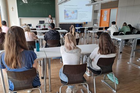 Am 18.7.2025 hat die Hochschule Kempten beim Berufsinformationstag der Beruflichen Schulen Landsberg mitgewirkt, um den Schülerinnen und Schülern der 11. Klassen sowie der Vorklassen das vielfältige Angebot vorzustellen. Auch die Fakultät Soziales und Gesundheit war mit von der Partie. Referentin Jennifer Ludwig erläuterte in ihrer Präsentation, worum es im Studiengang Pflege geht und warum dieser immer eine gute Wahl ist. Im Anschluss stellten Referentin Kristina Knobloch und Studienbotschafterin Judith Meissner die Studiengänge Soziale Arbeit, Gesundheitsmanagement und Sozialmanagement vor. Insgesamt rund 30 Schülerinnen und Schüler hörten sich die Vorträge an. Manch eine/r informierte sich im Nachgang im Einzelgespräch noch genauer, bevor sie in den sonnigen Freitagnachmittag entlassen wurden.