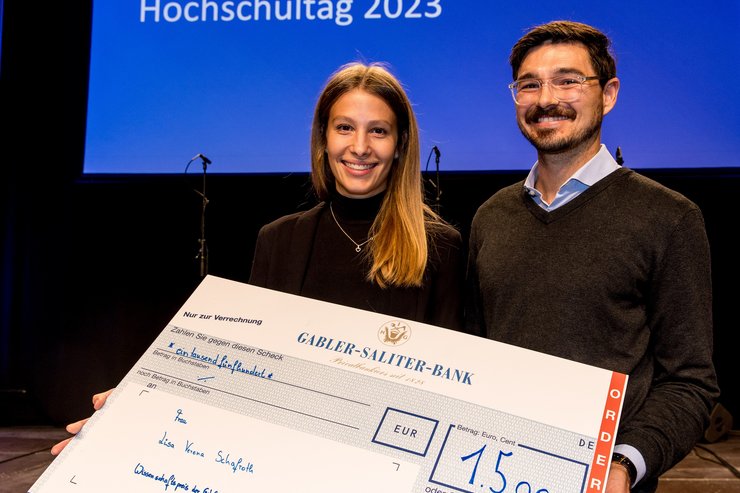 Preisvergabe TausendundeineNacht 2024: Unsere Preisträgerin für eine herausragende Bachelorarbeit.