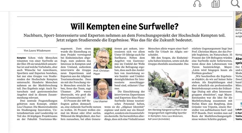 Braucht das Allgäu eine weitere Attraktion und wäre eine Surfwelle dafür geeignet? Was denken die Einheimischen darüber und haben Sie daran Interesse? Gibt es zudem touristisches Potenzial?