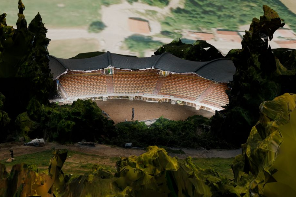 Mit Video-Drohnen und Spiegelreflexkamera aus dem 3Dvisionlab ausgerüstet, haben die 5 angehenden Ingenieurinnen und Ingenieure aus den beiden Studiengängen "Wirtschaftsingenieurwesen" und "Maschinenbau" in mehreren Feldtagen Tausende von Bildern aufgenommen, aus denen im Nachgang mit Hilfe von Software die 3D-Struktur der Freilichtbühne und des umgebenden Geländes rekonstruiert werden konnte. Das Ergebnis kann sich sehen lassen: das Modell taugt nicht nur zur Visualisierung des Geländes mit virtuellen Überflügen ( https://vimeo.com/1104057347 ), sondern auch zur Messung von Punktabständen, was die Studentengruppe mit realen Messungen verifizieren konnte.