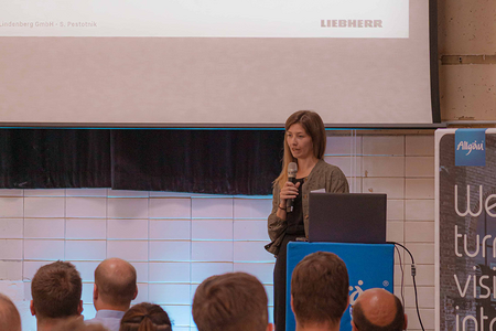 Anschließend erzählte Svenja Pestotnik in ihrem Beitrag „Von der Idee zur luftfahrtzugelassenen additiv gefertigten Hydraulikkomponente“, wie Liebherr mithilfe additiver Fertigung Hydraulikkomponenten produzieren konnte, die für den Einsatz in der Luftfahrt zugelassen sind. Dabei ging sie auf Anforderungen sowie Herausforderungen und Testverfahren ein.