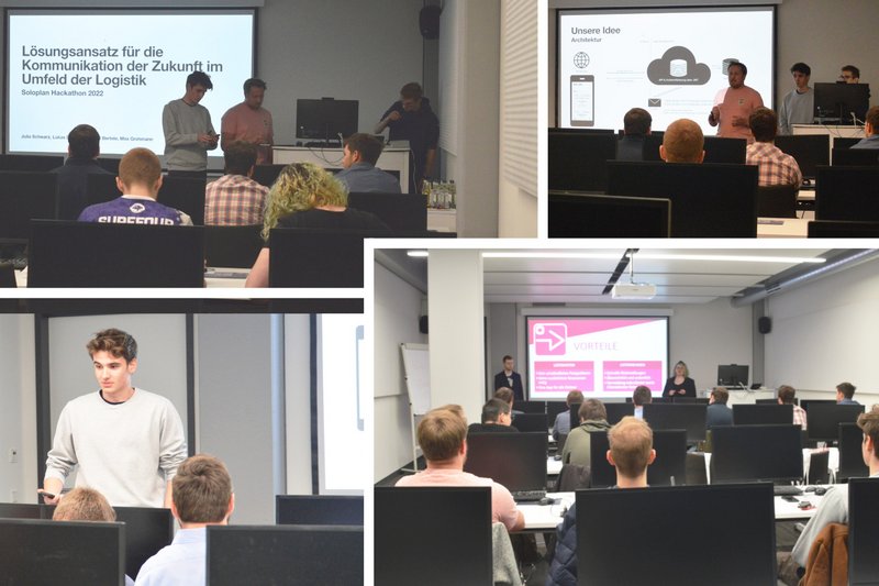 Drei Teams aus insgesamt 11 Informatik-Studierenden entwickelten Lösungsansätze für die Kommunikation der Zukunft im Umfeld der Logistik. Am Freitag, 25. November 2022, fand die Abschlusspräsentation der Konzepte in den Räumlichkeiten von Soloplan in Kempten statt.