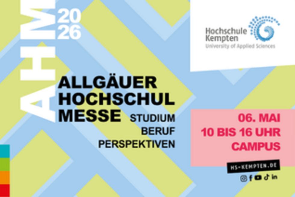 Die Allgäuer Hochschulmesse findet am 6. Mai 2026 von 10:00 bis 16:00 Uhr auf dem Campus der Hochschule Kempten statt. Als größte Studien- und Karrieremesse im Allgäu bringt sie Studieninteressierte, Studierende und Young Professionals mit über 140 Unternehmen aus der Region zusammen, vom regionalen Mittelstand bis zum internationalen Player. Die Messe gliedert sich in drei Bereiche: Studienorientierung, Karriere und Perspektiven. Der Eintritt ist kostenfrei, eine Anmeldung ist nicht erforderlich.