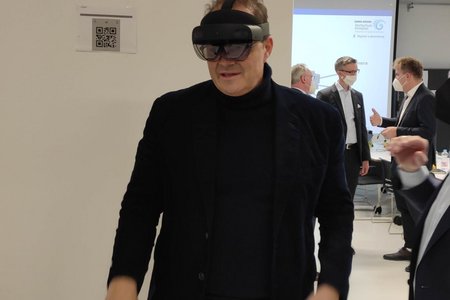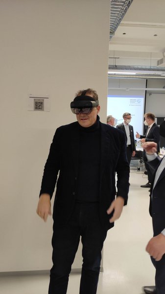 Dabei konnten u.a. der Vorstandsvorsitzende Christian Thönes sowie die Geschäftsführer Alfred Geißler, Reinhard Musch und Dr. Tommy Kuhn gemeinsam mit Prof. Dr. Wolfgang Hauke, Präsident der Hochschule Kempten, die neuen digitale Technologien direkt im Einsatz testen.