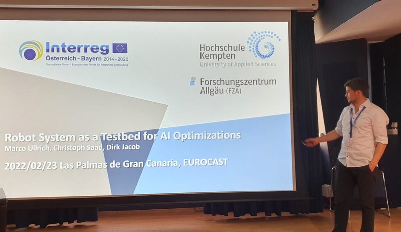 Prof. Dr. Dirk Jacob und Marco Ullrich stellten auf der 18th International Conference on Computer Aided Systems Theory im Museo Elder de la Ciencia y la Tecnonogía in Las Palmas de Gran Canaria das Forschungsprojekt KI-Net vor.