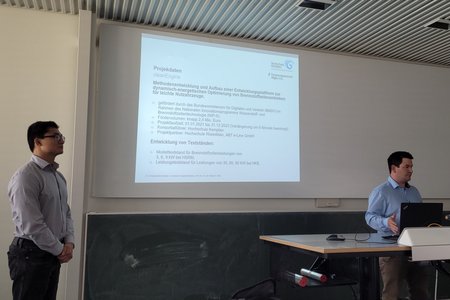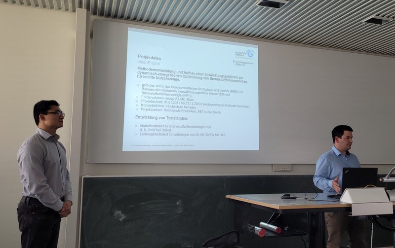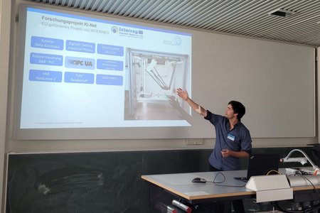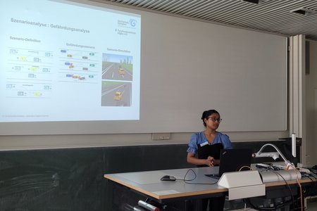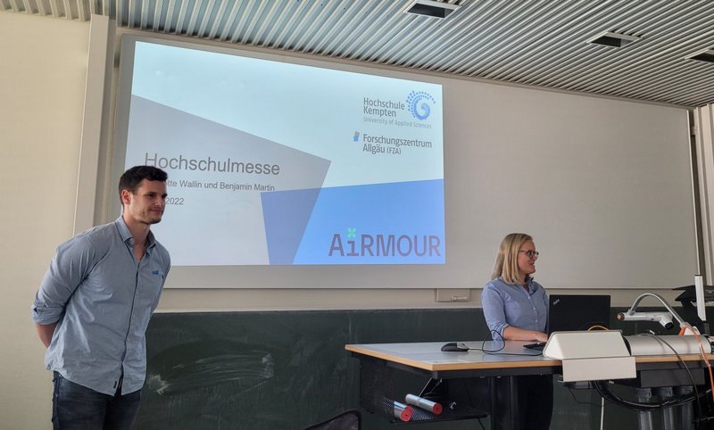 Verena Mattes startete mit einer Vorstellung von AssistMobil, einem treppensteigenden Rollstuhl. Marzana Khatun stellte anschließend das Forschungsprojekt MLPaSSAD des Institut für Fahrerassistenz und vernetzte Mobilität vor, in dem die Sicherheit von automatisch fahrenden Autos optimiert wird. Yue Ni und Ludwig Robl gaben Einblicke in das Projekt cleanEngine, das Brennstoffzellen-Antriebe für leichte Nutzfahrzeuge optimiert. Danach berichteten Charlotte Wallin und Felix Wachter vom Drohnenprojekt AiRMOUR. Zum Schluss stellte Marco Ullrich das TTZ Sonthofen vor, das an den Fabriken der Zukunft arbeitet.