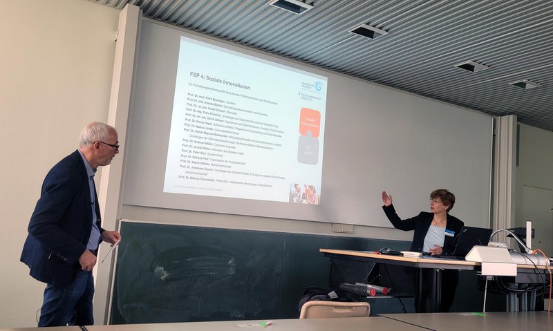 Direkt zum Start der Messe gab es Informationen aus erster Hand zu unseren Forschungsschwerpunkten Energie, Mobilität, Produktion und Soziale Innovationen – direkt von den Professorinnen und Professoren Matthias Finkenrath, Werner E. Mehr, Michael Layh sowie Petra Friedrich und Peter Nick.