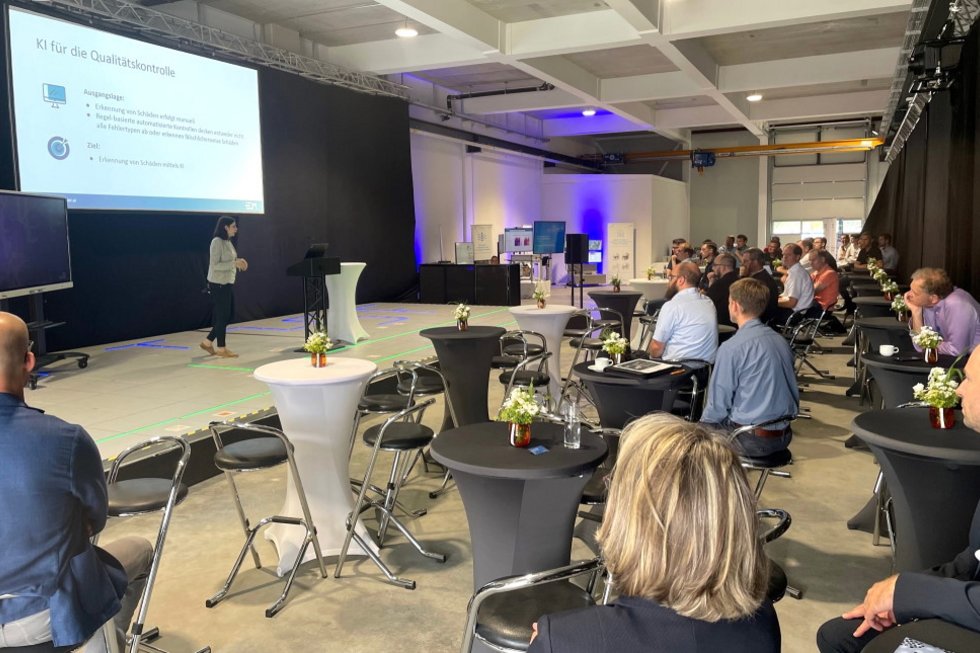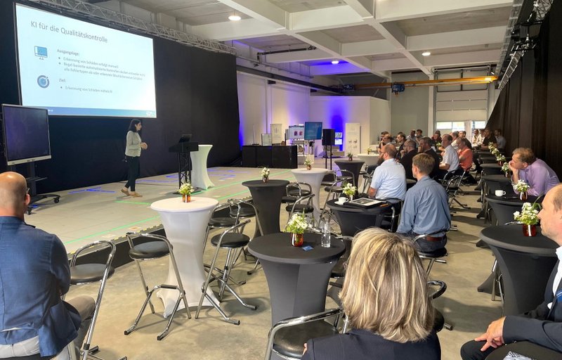 Über Chancen und Potenziale für eine effizientere Produktion durch KI referierte Dr. Julia König, Geschäftsführerin der Ehrenmüller GmbH, und gab spannende Einblicke über individuelle Lösungen für den Mittelstand. Welche Rolle Sensoren für eine intelligente Zustandsüberwachung von maschinellen Anlagen spielen, zeigten im Anschluss Anna-Lina Bader, Expertin für Sales Coordination, und Data Scientist Dominik Rotter von der Balluff GmbH. An den verschiedenen TechDemos des TTZ konnten die Teilnehmenden den gemeinsamen Austausch zudem fachlich vertiefen.