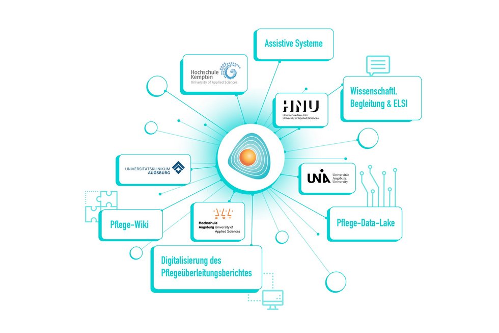 Klar ist: Der Einsatz von technisch-digitalen Systemen im klinischen sowie außerklinischen Bereich kann die gesundheitliche, pflegerische und persönliche Situation der Betroffenen verbessern. Mit dem Projekt CARE REGIO entsteht im Regierungsbezirk Schwaben eine Leitregion für digital unterstützte Pflege. Dabei handelt es sich um ein vom Bayerischen Staatsministerium für Gesundheit und Pflege gefördertes Verbundprojekt.