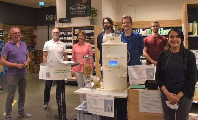 Das Ziel des Projekts „Food-Fill“ an der Hochschule Kempten ist es, verpackungsfreies Einkaufen von kühlpflichtigen Lebensmitteln im Handel zu ermöglichen. Mit dem 3D-gedruckten Abfüllautomaten ist dieses Ziel nun in greifbare Nähe gerückt. Nach seiner ersten erfolgreichen Bewährungsprobe letztes Jahr fand nun der zweite Test im PurNatur, dem Naturkostladen der Bahnhof Apotheke Kempten, statt.